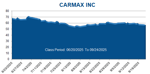 On this news, CarMax’s stock price fell $11.5 per share, or 20.07%, to close at $45.60 per share on September 25, 2025.