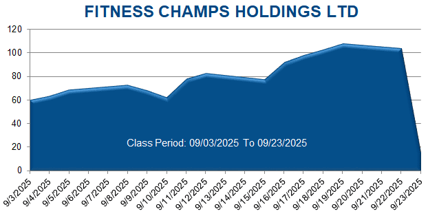 A securities class action has been filed against Fitness Champs Holdings Ltd. (FCHL) on behalf of all persons and entities that purchased or otherwise acquired Fitness Champs Holdings Ltd. (“FCHL” or the “Company”) securities between September 3, 2025 through September 23, 2025. This case has been filed in the USDC – SDNY.