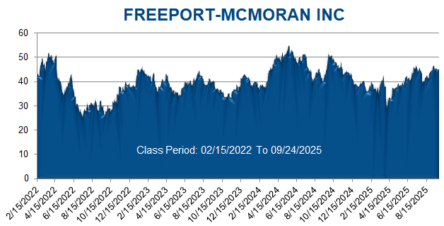 A securities class action has been filed against Freeport-McMoRan Inc. (FCX) on behalf of purchasers of the securities of Freeport-McMoRan Inc. (NYSE: FCX) between February 15, 2022 through September 24, 2025. This case has been filed in the USDC – AZ.