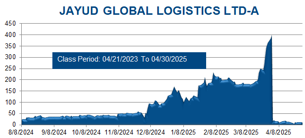 If you purchased Jayud Securities between April 21, 2023 and April 30, 2025, inclusive, and have suffered significant losses, realized or unrealized, you are encouraged to contact Scott+Scott attorney Mollie Chadwick at (619) 798-5307, or via email at [email protected], for more information.