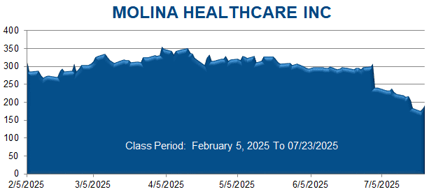 On this news, Molina’s stock price fell $6.97, or 2.9%, to close at $232.61 per share on July 7, 2025, on unusually heavy trading volume.