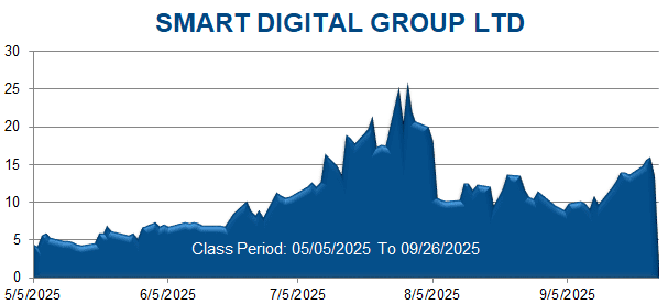A securities class action has been filed against Smart Digital Group Limited (SDM) on behalf of persons and entities that purchased or otherwise acquired SDM securities between May 5, 2025 through September 26, 2025. This case has been filed in the USDC – SDNY.